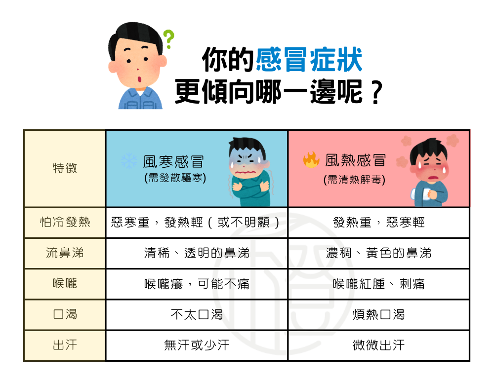 醫師會根據你的症狀,區分是 風寒 還是 風熱。