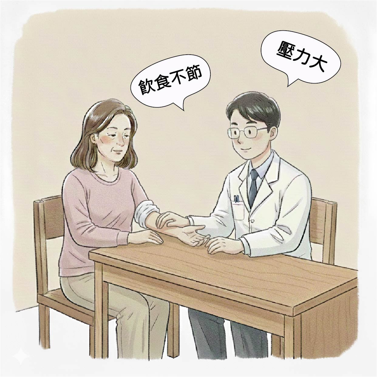 內傷因素: 如案例中的壓力過大、腸胃功能不佳,都會反映在皮膚上。