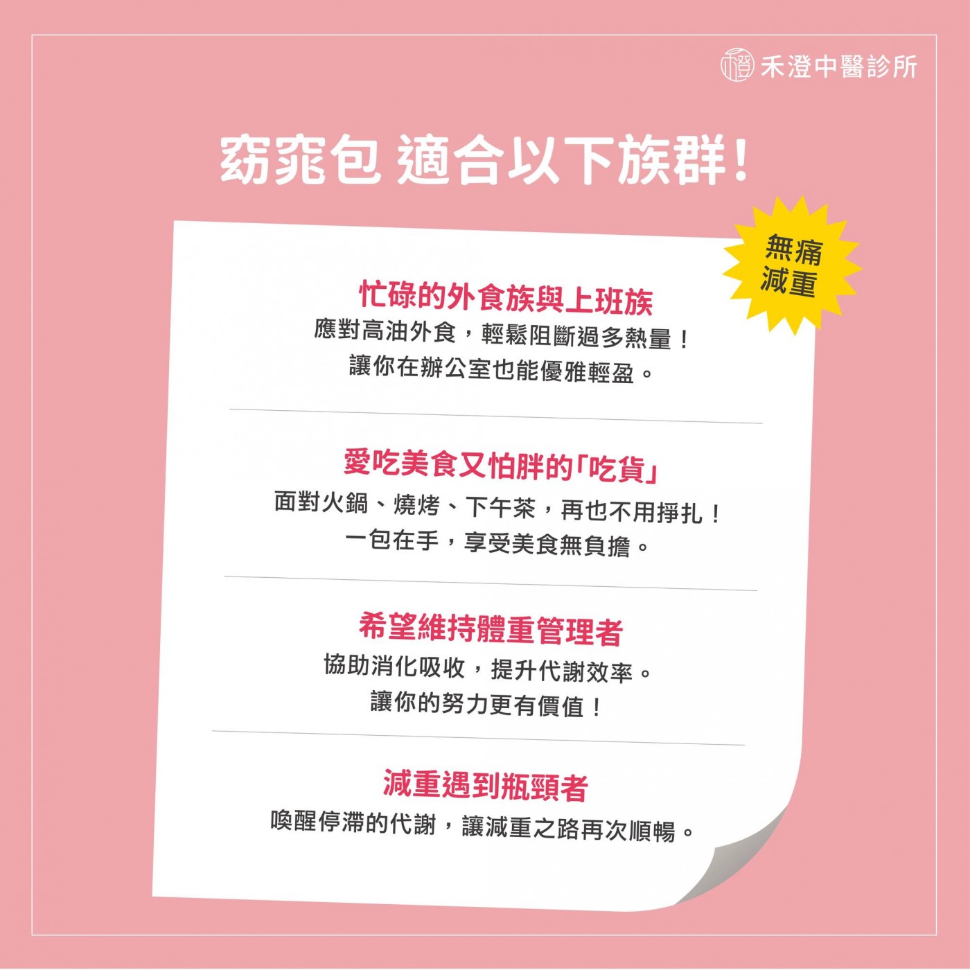禾澄中醫 的窈窕包不是代餐,而是你享受美食的最佳「安心符」。