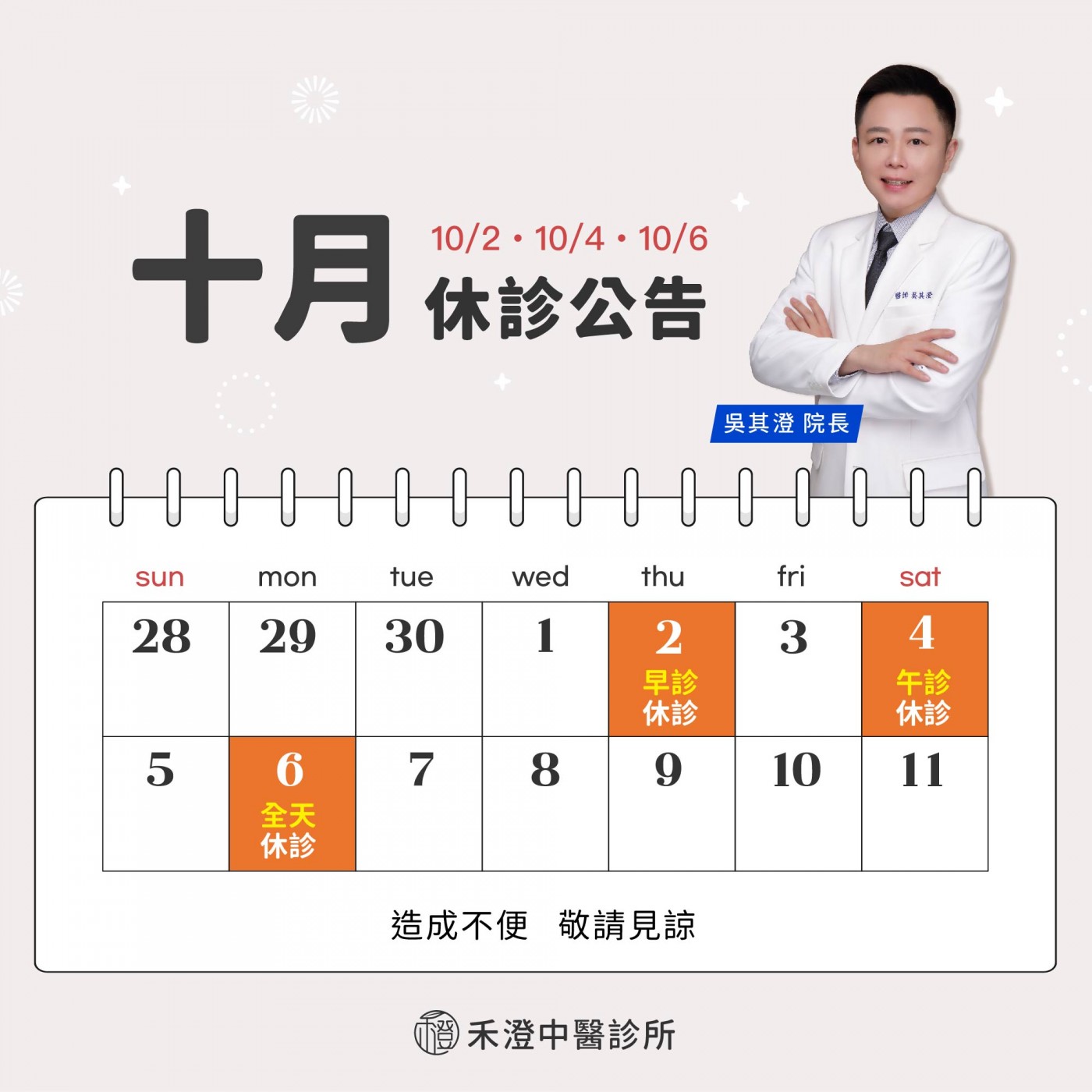 10/4 ( 六 ) 午診 吳其澄院長 休診 ( 早診 正常看診)